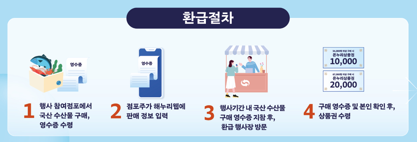 - 국산 수산물 구매 내역이 확인돼야 환급 가능